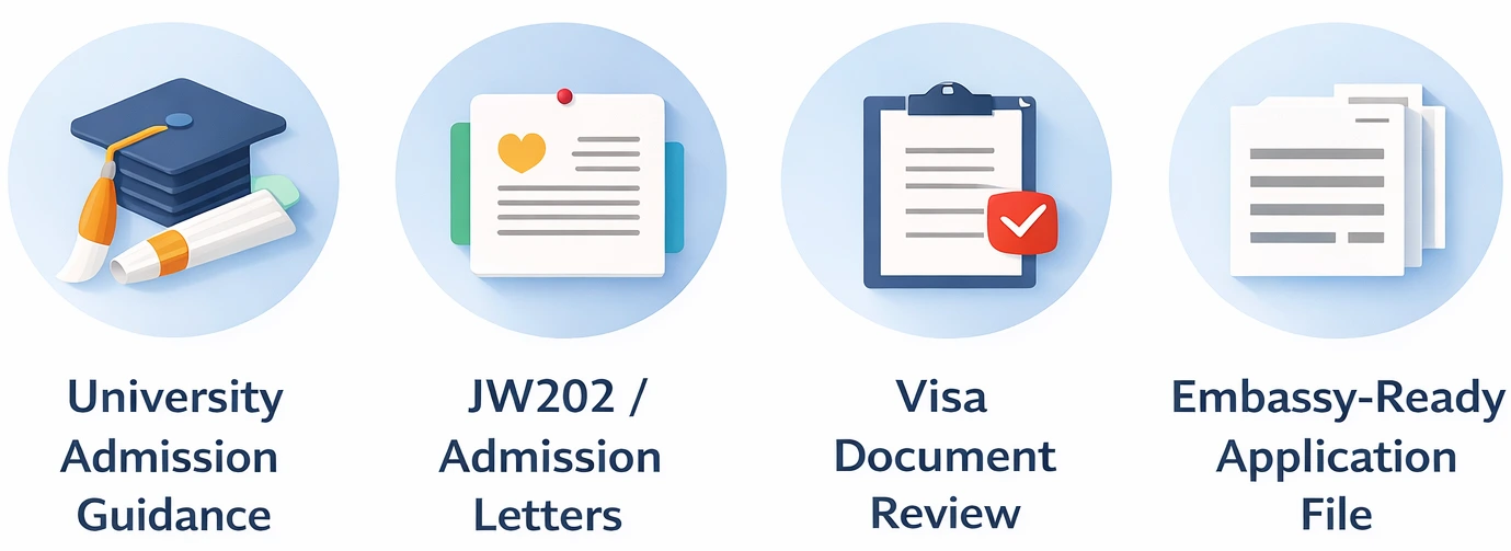 We guide students through university coordination, Chinese documents, and visa preparation — step by step.